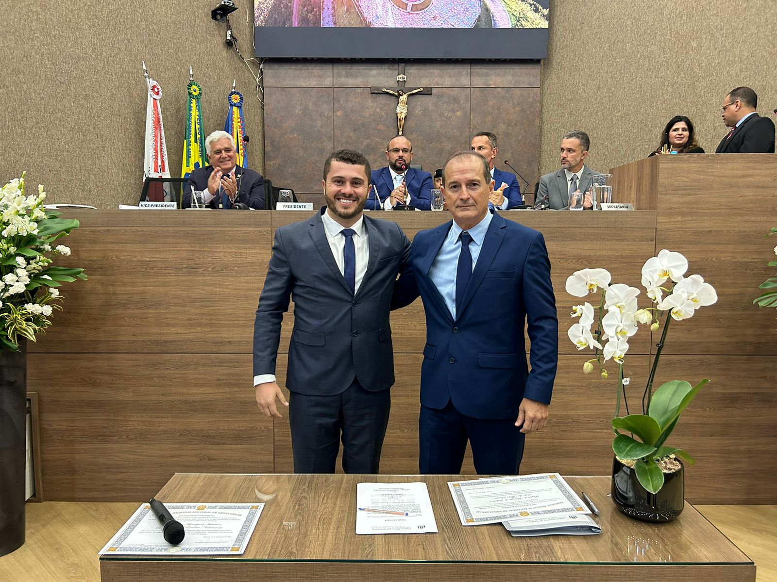 Novo prefeito, Dr. Elio da Mata Santos, e o vice-prefeito, Raphael Von Rondow Nascimento. Foto: Ascom/Câmara de Itabirito.