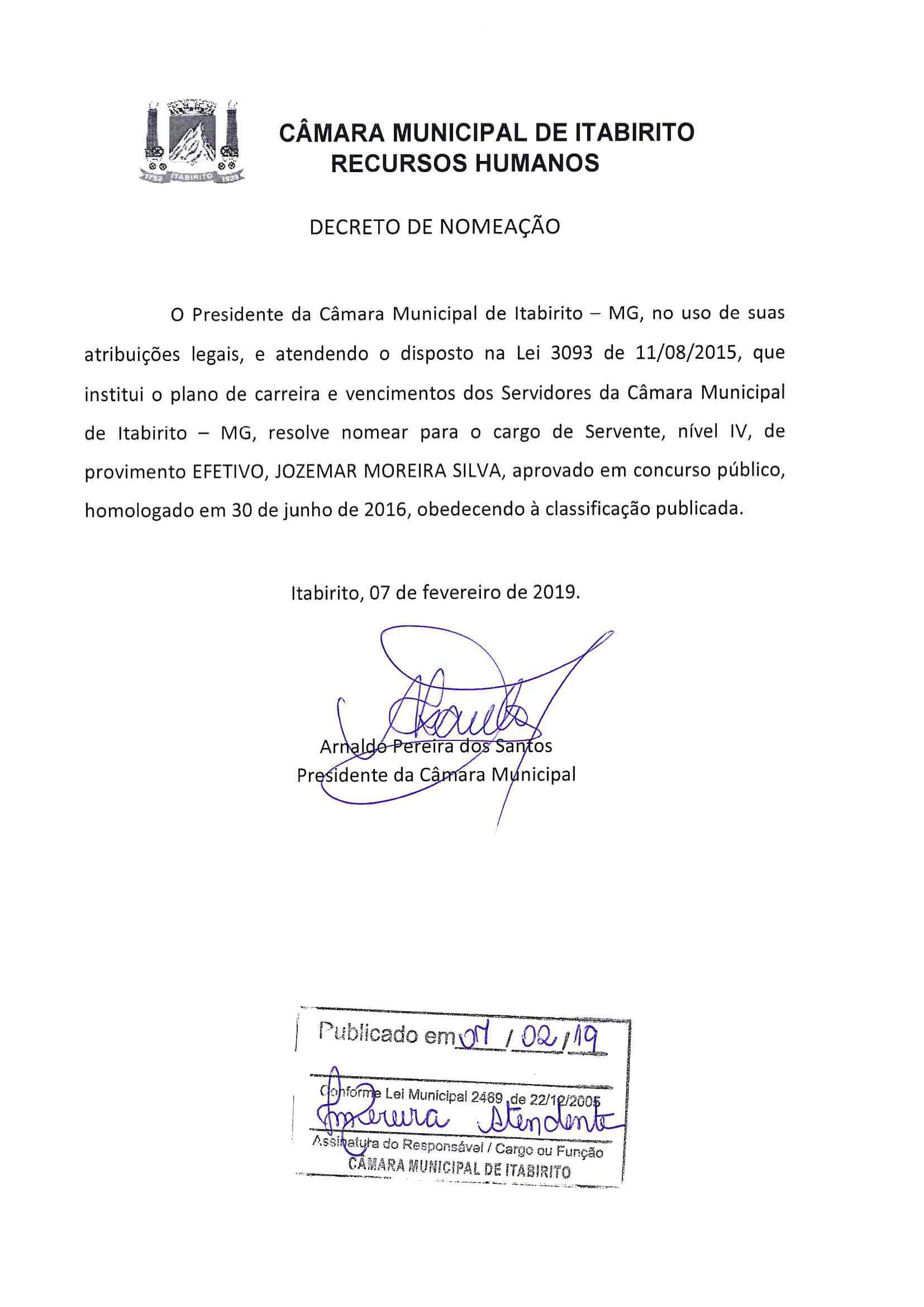Decreto de Nomeação de candidatos aprovados 07022019