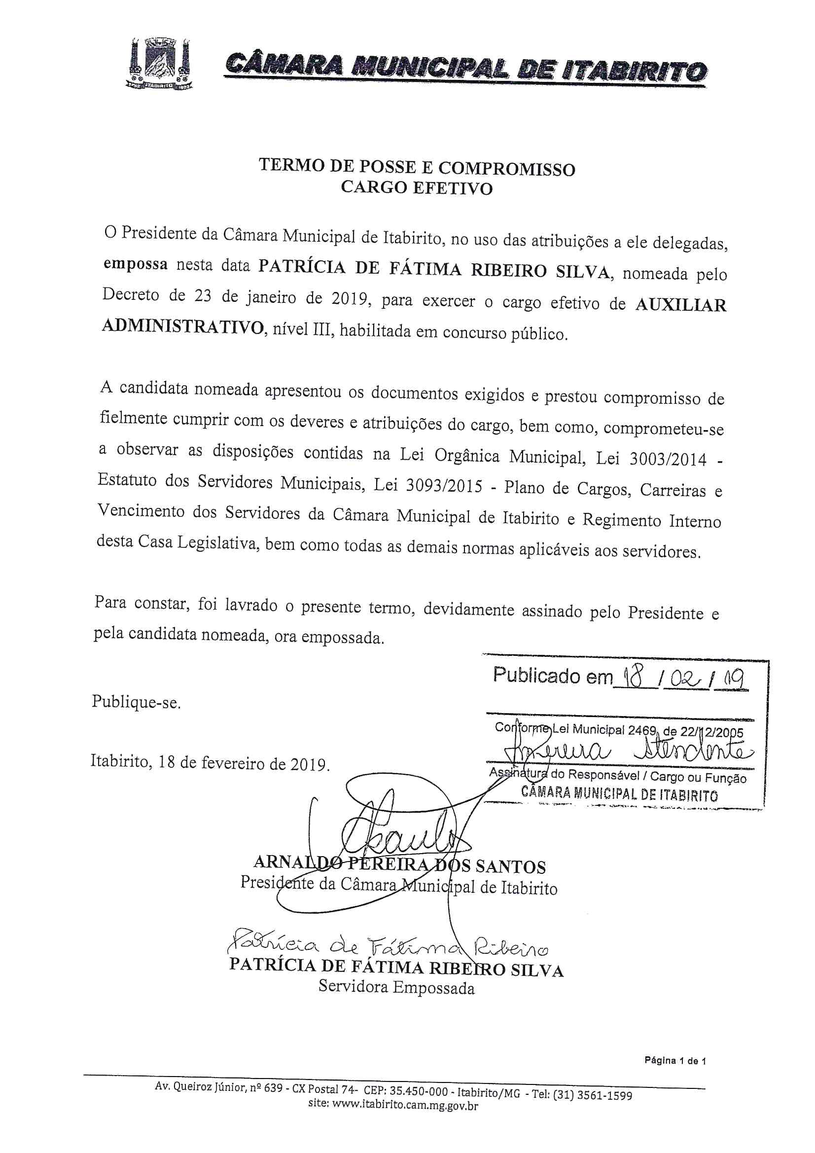 TERMO DE POSSE PATRÍCIA DE FÁTIMA RIBEIRO SILVA